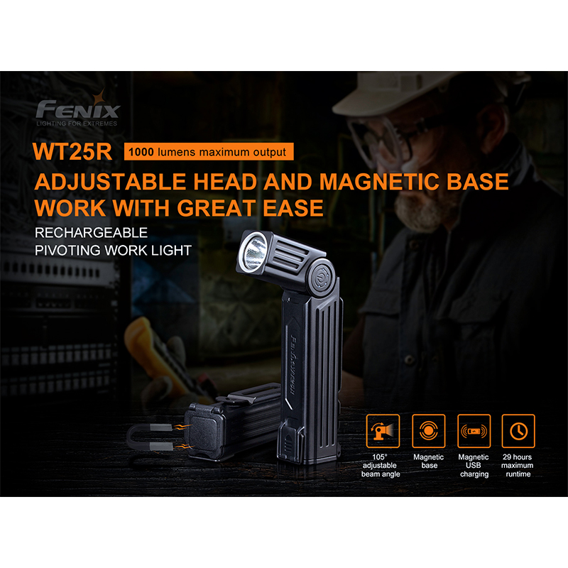 چراغ قوه فنیکس WT25R با قدرت نور بسیار بالا، طراحی ضد آب و مقاوم در برابر ضربه، به یکی از بهترین انتخابها برای استفاده در طبیعتگردی، کمپینگ، شکار و همچنین استفادههای نظامی تبدیل شده است. این چراغ قوه دارای قابلیت شارژ مجدد است که استفاده از آن را بسیار راحت و اقتصادی میکند.