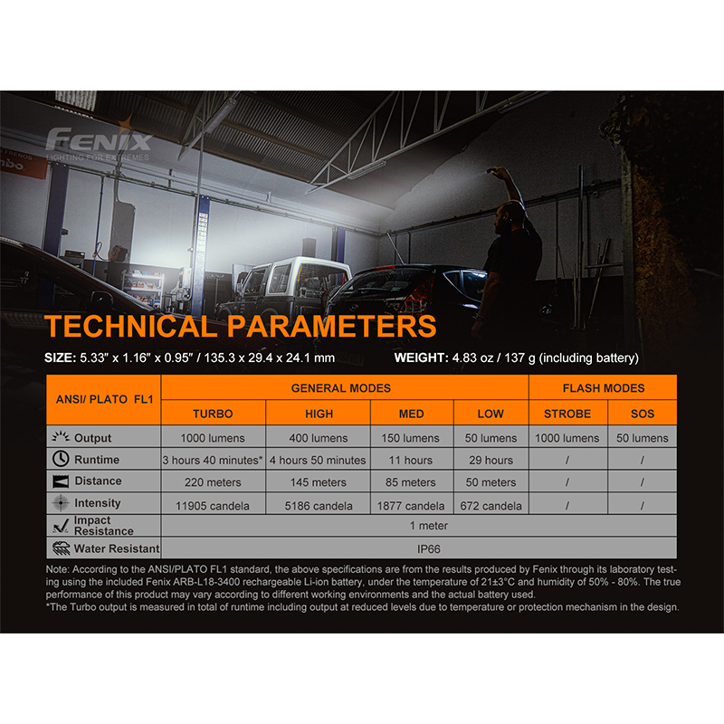| ماندگاری باتری در حالت نور توربو (1000 لومن) | 3 ساعت و 40 دقیقه |