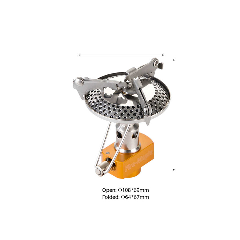 ابعاد باز شده برابر با 10. 8 قطر و 6. 9 ارتفاع بوده و از ساختار اتصال پیچی بهره مند میباشد به همین دلیل بهترین کپسول گاز قابل حمل مورد استفاده برای آن کپسول 110 ، 230 و 450 گرمی میباشد. در واقع این نوع کپسولها علاوه بر تامین گاز برای سرشعله یک پایه برای ایستادن روی زمین نیز محسوب میشوند به همین دلیل استفاده از کپسول 220 گرمیاستوانه ای حتی با تبدیل نمیتواند گزینه خوبی برای تامین سوخت این محصول باشد.