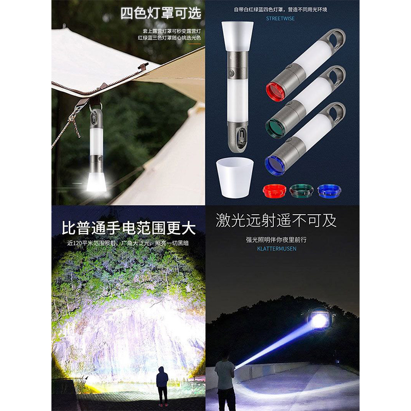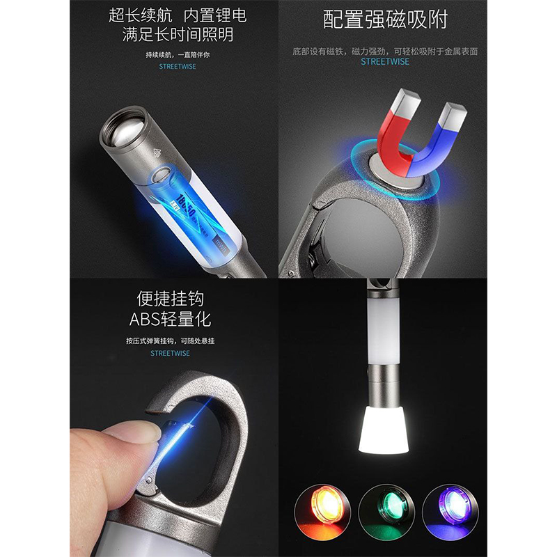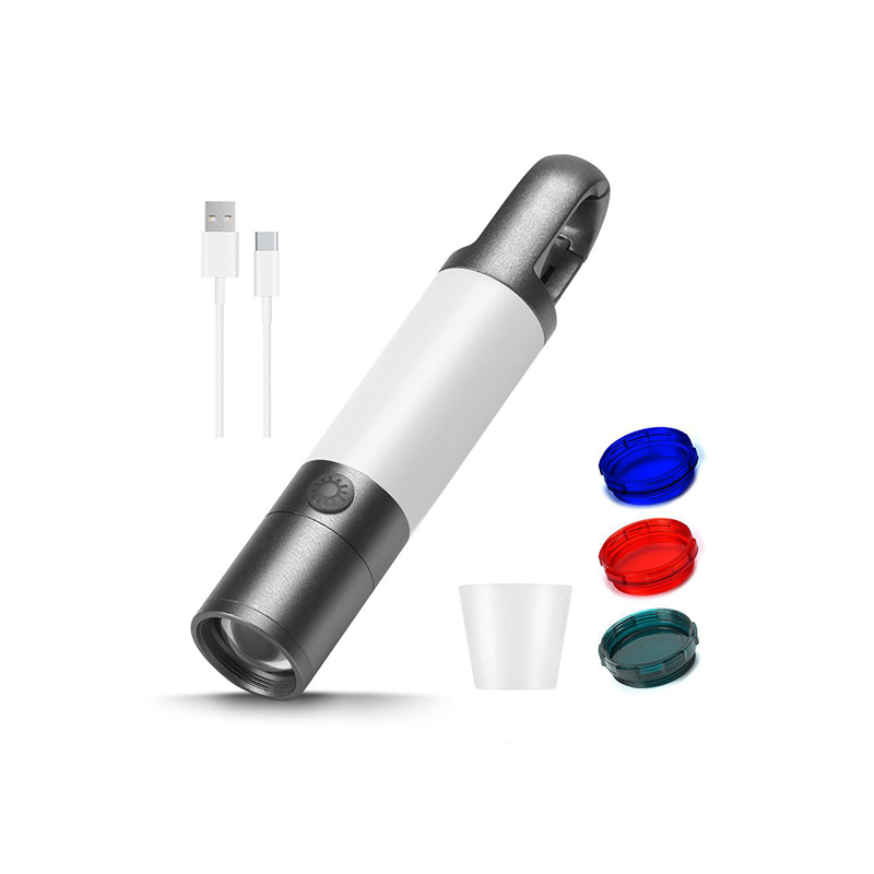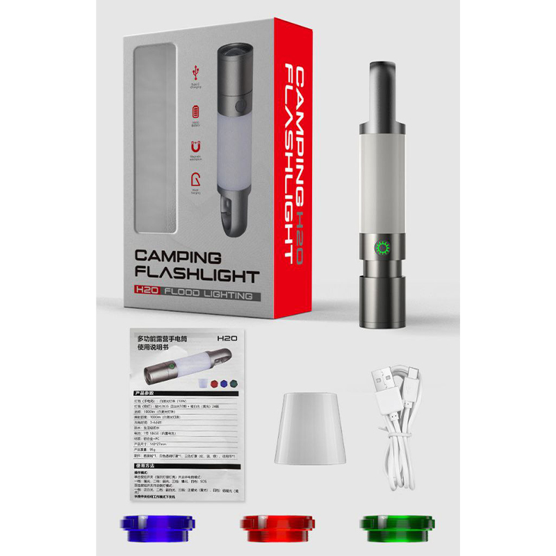 | سایر مشخصات | دارای کارابین و آهن ربا متصل به بدنه برای اتصال به نقاط مختلفقابل استفاده به عنوان چراغ چادر مسافرتی و کوهنوردیدارای 4 حالت نوردهی برای چراغ قوه ( نور زیاد، نور کم، چشمک زن یا SOS سریع، چشمک زن آرام)دارای چراغ کناری با نور: مهتابی در دو حالت پر نور و کم نور آفتابی در دو حالت پر نور و کم نور چشمک زن قرمزکابل شارژ USB از نوع Type-Cدارای سه لنز رنگی و یک لنز مات برای تغییر رنگ نور چراغ قوهزمان فول شارژ شدن: 3 الی 4 ساعتمتریال از آلومینیوم و پلاستیک مات فشرده |