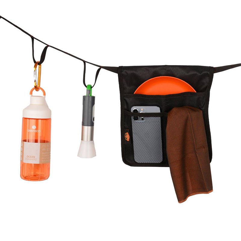 ست بند و رخت آویز مسافرتی هپی کمپ مدل 46830 یک محصول بسیار کاربردی برای استفاده در کمپ و شب مانی می باشد، با استفاده از این محصول می توانید انواع لوازم خود را نظیر لیوان، چراغ قوه، لوازم پخت پز و.... بقیه لوازمی که از قرار دادن آنها روی زمین و یا روی میز معذور هستید می توانید به این بند و رخت آویز آویزان کنید و البته می توانید در صورت خیس شدن لباس های خودتان آن را به این بند آویز آویزان کنید با کمک این محصول از گم شدن و یا آسیب دیدن لوازم خود در طول کمپ جلوگیری خواهید کرد.
