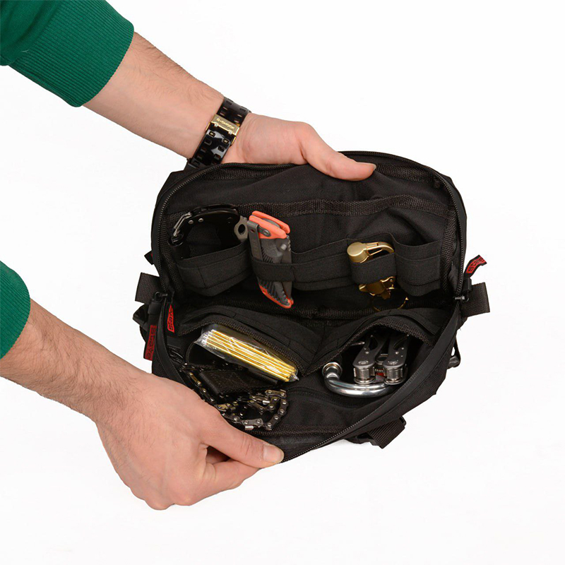 | سایر مشخصات | دارای یک جیب زیپ دار بیرونیجیب های داخلی متعدد برای تفکیک لوازممناسب برای انواع تجهیزات سفر و حتی کمک های اولیهبدنه مقاوم در برابر نور آفتاب و بارشدارای بند های اتصال به قفسه سینه با امکان جدا شدن توسط قفل پلاستیکیدارای رنگبندی مختلف**(تجهیزات قرار داده شده در تصاویر کیف فقط جنبه نمایشی دارند)** |