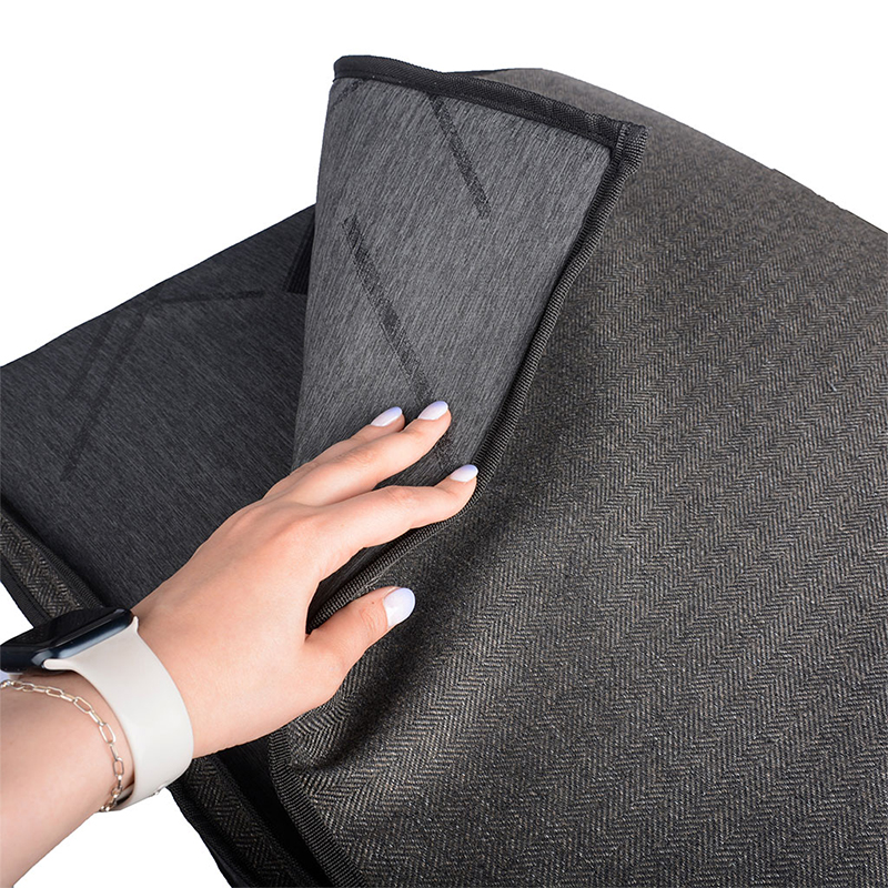 اولین موردی که باید به آن اشاره کنیم طراحی زیرانداز است که خریداران به آن اهمیت زیادی میدهند. ظاهر این محصول به صورت چهارخانه طراحی شده که بسیار ساده و زیبا است. در مورد ساختار آن نیز باید گفت که این زیرانداز به صورت آکاردئونی ساخته شده و این قابلیت باعث شده تا شما بتوانید به راحتی آن را بسته بندی کنید. حالت آکاردئونی زیرانداز همچنین فضای کمتری را اشغال میکند و دردسرهای تا کردن آن را نخواهی داشت.