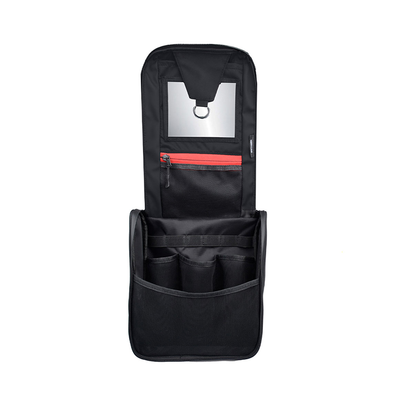 | سایر مشخصات | دارای جیب توری چسب دار در قسمت بیرونیدارای بند های اتصال لوازم روی دربزیپ واترپروف شده با کیفیتآینه داخلی + حلقه آویز کیفجیب و محفظه های تفکیک کننده لوازم در فضای داخلیدستگیره حمل برزنتیمقاوم در برابر آب و گرد و غبار |