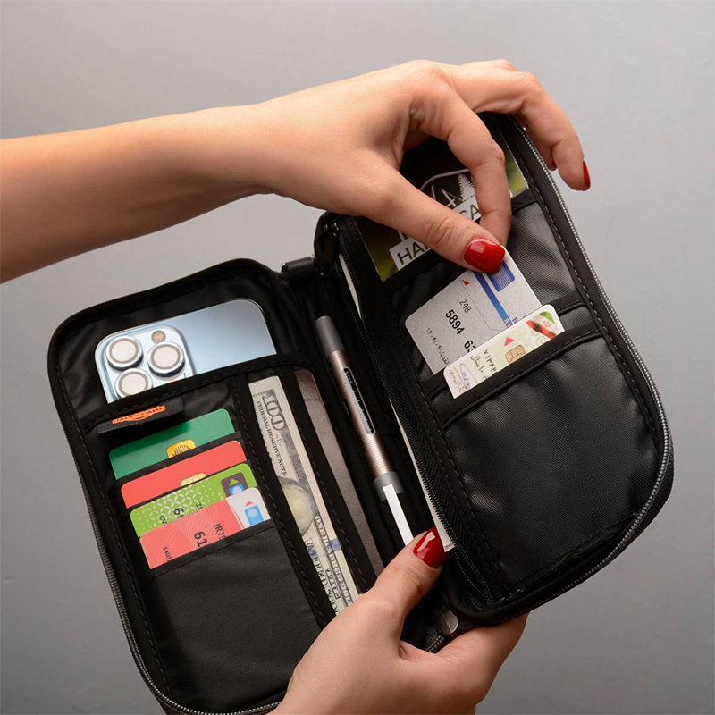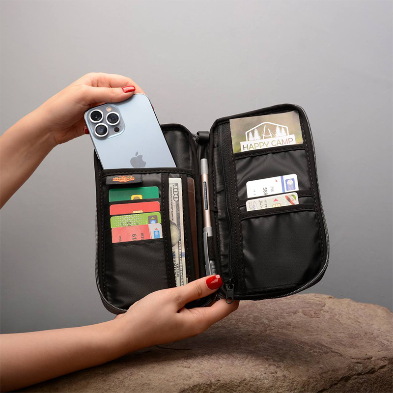 کیف پاسپورت مسافرتی هپی کمپ مدل 46823 یک محصول کاربردی و جذاب است که می تواند استفاده های زیادی برای شما چه در طول مسافرت و چه در زندگی روزمره داشته باشد.اگر جزو افرادی باشید که کارت های بانکی زیادی همراه خود دارید حتما می دانید که مدیریتی آنها چقد می تواند دردسر ساز باشد.این کیف مسافرتی در این زمینه به شما کمک زیادی خواهد کرد.در ادامه با ویژگی های آن بیشتر آشنا خواهی شد.