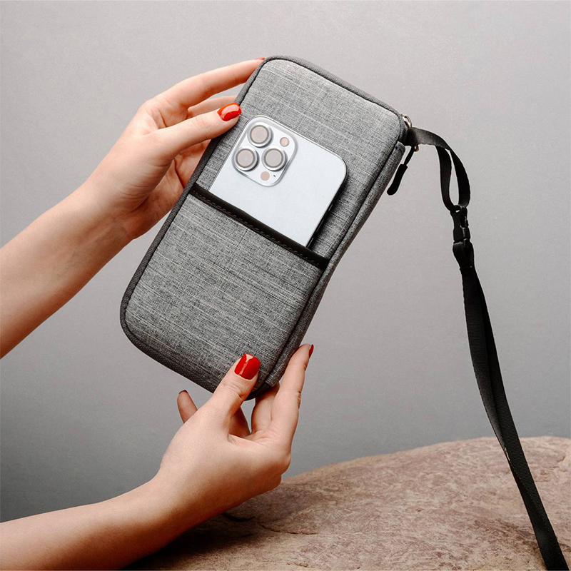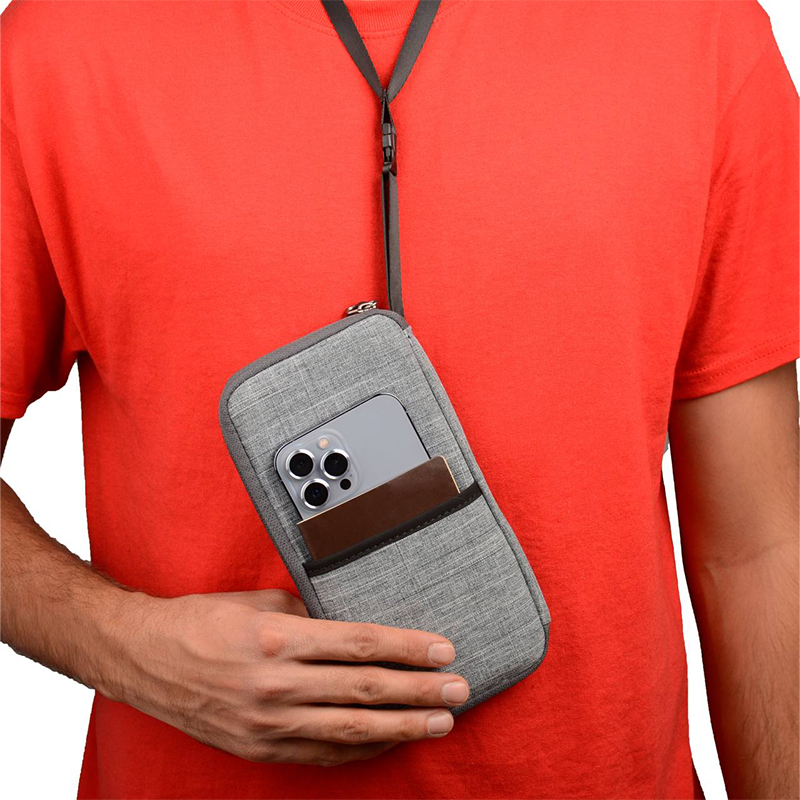 همچنین این محصول یک بند مخصوص دارد که می توانید از آن برای افزایش ایمنی استفاده کنید و کیف را دور گردن یا مچ دست ببندید.