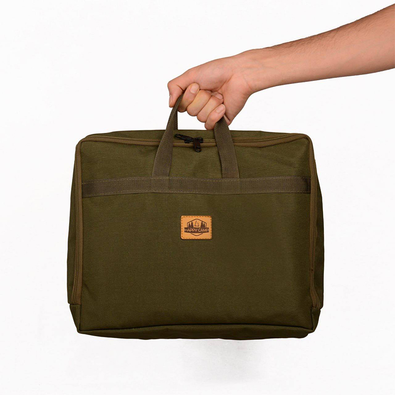 کیف اجاق مسافرتی هپی کمپ دارای ابعادی معادل 40 × 32 × 4 سانتی متر است که سایز استانداردی بوده و شبیه به یک کیف سامسونت طراحی شده تا بتوانید آن را توسط بندهای مخصوص جابجا کنید. تنها تفاوت این محصول در این است که زیپ آن به صورت کتابی باز میشود و این کار به شما اجازه میدهد تا اجاق گاز خود را به سادگی درون آن قرار دهید. وزن این محصول تنها 295 گرم بوده و حجم کوچکی دارد که در سفرهای مختلف فضای زیادی را اشغال نخواهد کرد.