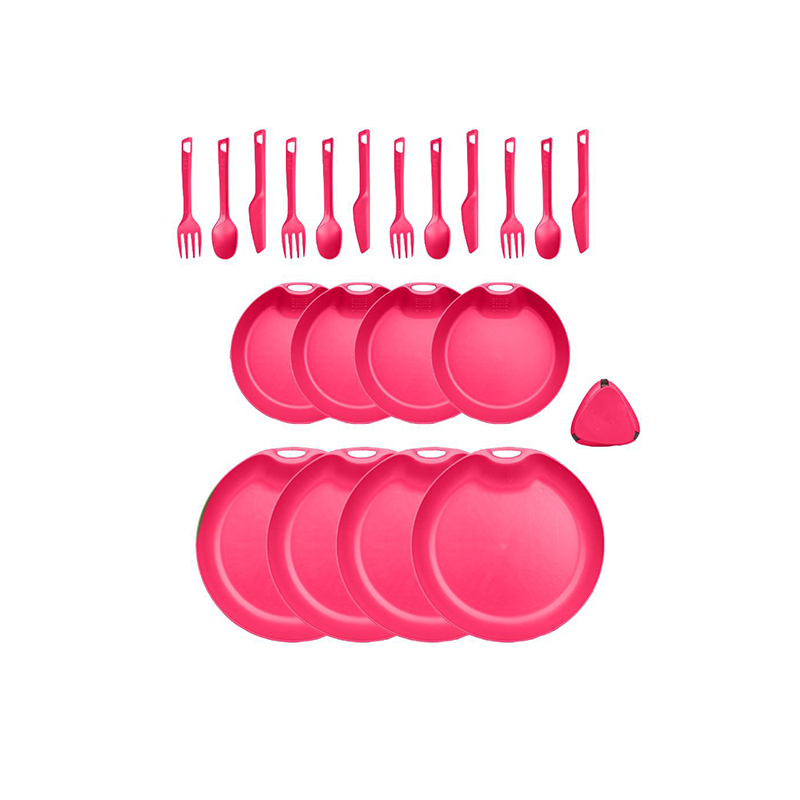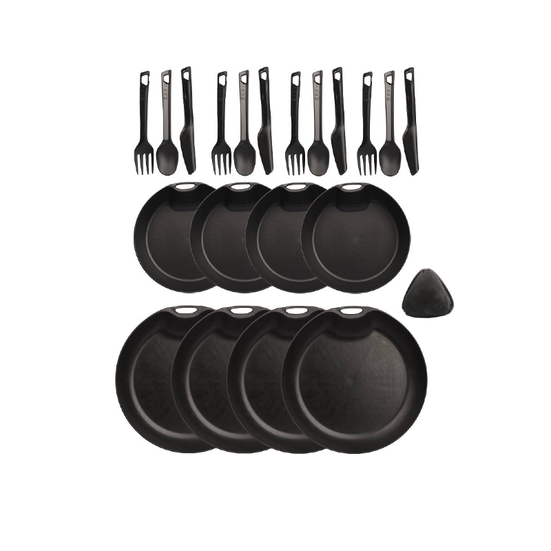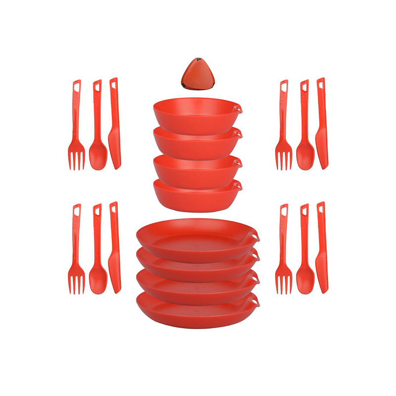 اما ظروف سفری با ساختار منحصر به فردی که دارند این امکان را به شما میدهد تا دفعات زیادی از آن استفاده کنید و به دلیل طراحی و متریال آنها تنها با حرارت ممکن است که آسیب جدی به آنها وارد شود. لایف کمپ یکی از تولیدکنندگان بزرگ و مطرح در این زمینه است که با تولیدات انواع لوازم مسافرتی توانسته اکثر نیاز طبیعت گردان را به صورت کامل پوشش دهد. این ست ظروف شامل 4 عدد بشقاب، 4 عدد کاسه، 4 عدد ست قاشق چنگال و کارد و همچنین یک ادویه پاش در یک کیف توری می باشد. که هر کدام از این ظروف را می توانید به صورت مجزا نیز استفاده کنید.