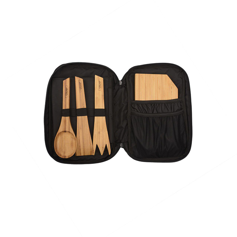 همچنین شما میتوانید در منزل نیز آن را استفاده کنید و به این ترتیب دیگر مشکل فضای کم نخواهی داشت. این ست لوازم آشپزی شامل دو عدد چاقو بزرگ و کوچک، سه مدل کفگیر چوبی، یک عدد تخته برش چوبی است که همهی این لوازم در داخل یک کیف برزنتی قرار گرفته و کاملا ضربه گیر است.