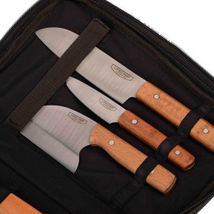 مجموعه کامل و کاربردی – وجود چند چاقو، ساطور، تخته برش و ابزار جانبی باعث شده این ست برای آشپزی روزمره و کمپینگ مناسب باشد.