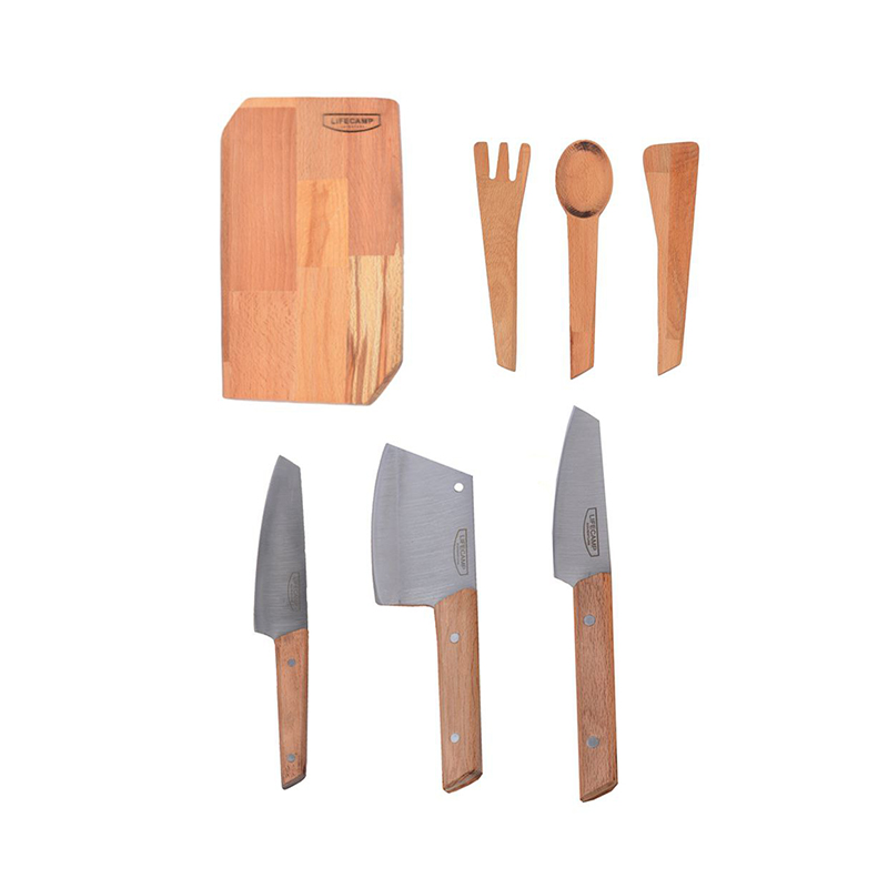 این ست چاقو و تخته برش 7 تکه ژاپنی دارای یک عدد چاقو بزرگ، یک عدد چاقو کوچک، یک عدد ساطور و یک ست آشپزی که شامل یک عدد کفگیر، یک عدد قاشق و یک عدد چنگال قرار داده شده است که به راحتی می توانید انواع غذاهای لذید را طبخ کنید. البته شایان ذکر است که در بسته بندی این محصول یک عدد تخته برش نیز قرار گرفته است برش انواع مواد غذایی با این محصول راحت تر می شود. طراحی این لوازم به گونه ای است که می توانید آنها را در مسافرت استفاده کنید. این محصول توسط برند ایرانی لایف کمپ به تولید رسیده است، این برند در زمینه تولیدات لوازم طبیعت گردی محصولات متنوعی را روانه بازار کرده است.