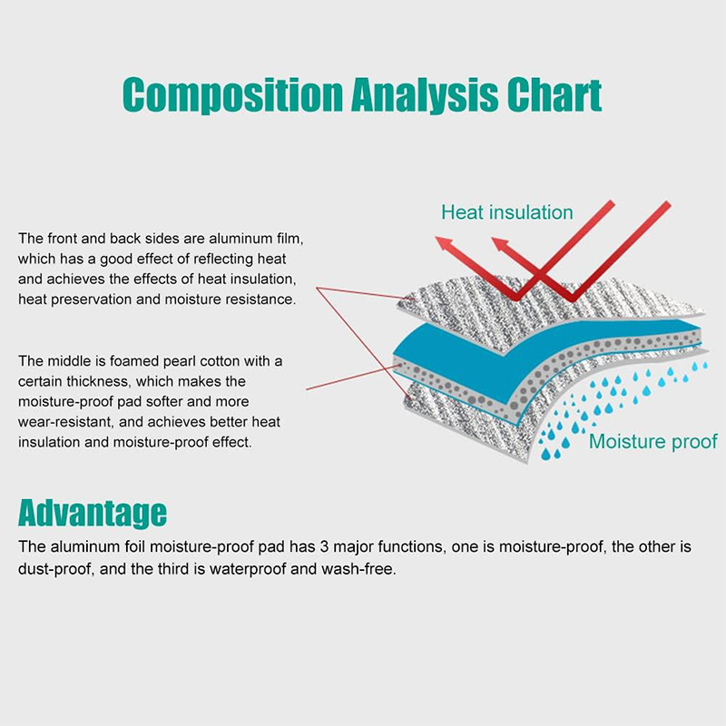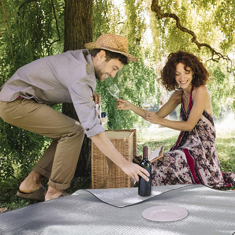 بیشتر زیراندازهای مسافرتی از مواد سبک و مقاوم ساخته میشوند. از جمله این مواد میتوان به فوم، پلیاستر و نایلون اشاره کرد که به دلیل خاصیت ضد آب و عایقبندی در برابر حرارت مورد توجه قرار میگیرند. در ساخت این زیرانداز نیز همینطور، متریال داخلی این زیرانداز از فوم ساخته شده است و همچنین رویه بیرونی آن نیز از ورق آلومینیوم ساخته شده است که این زیرانداز مسافرتی را به یک زیرانداز ضد آب و ضد حرارت و رطوبت تبدیل میکند.