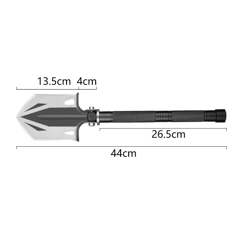ابعاد باز شده این بیل آفرودی برابر با 44 × 10 سانتی متر می باشد که ابعاد مناسب برای بیل آفرودی می باشد، البته شایان ذکر است که این بیل دارای ساختار تاشو بوده و پس از استفاده می توانید آن را جمع کرده تا فضای کمتری را اشغال کند. متریال استفاده شده در ساخت صفحه بیل مسافرتی تاشو از فولاد ضد زنگ است که یکی از لبه های آن دارای تیغه اره شکلی است که برای بریدن می توانید از آن استفاده کنید.