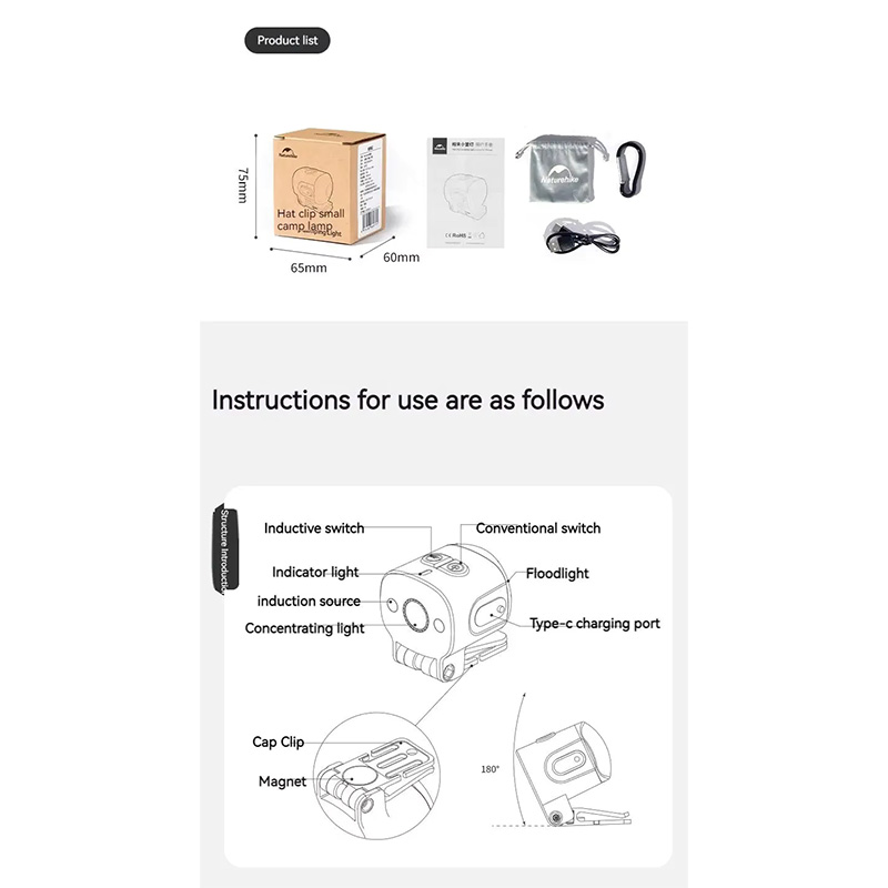 یکی از ویژگیهای برجسته این چراغ، طراحی آن است. چراغ کلاه نیچرهایک بهراحتی بر روی کلاه یا حتی کلاههای مخصوص کمپینگ نصب میشود. طراحی سبک و کمحجم آن به کاربران این امکان را میدهد که در طول فعالیتهای مختلف، مانند پیادهروی شبانه، کوهنوردی، یا حتی هنگام تعمیرات جزئی، به راحتی از نور استفاده کنند بدون اینکه نیاز به استفاده از دستها داشته باشند. ابعاد 4.8 × 5.1 سانتی متری محصول سبب سهولت در استفاده و همچنین جابجایی راحت محصول شده است.