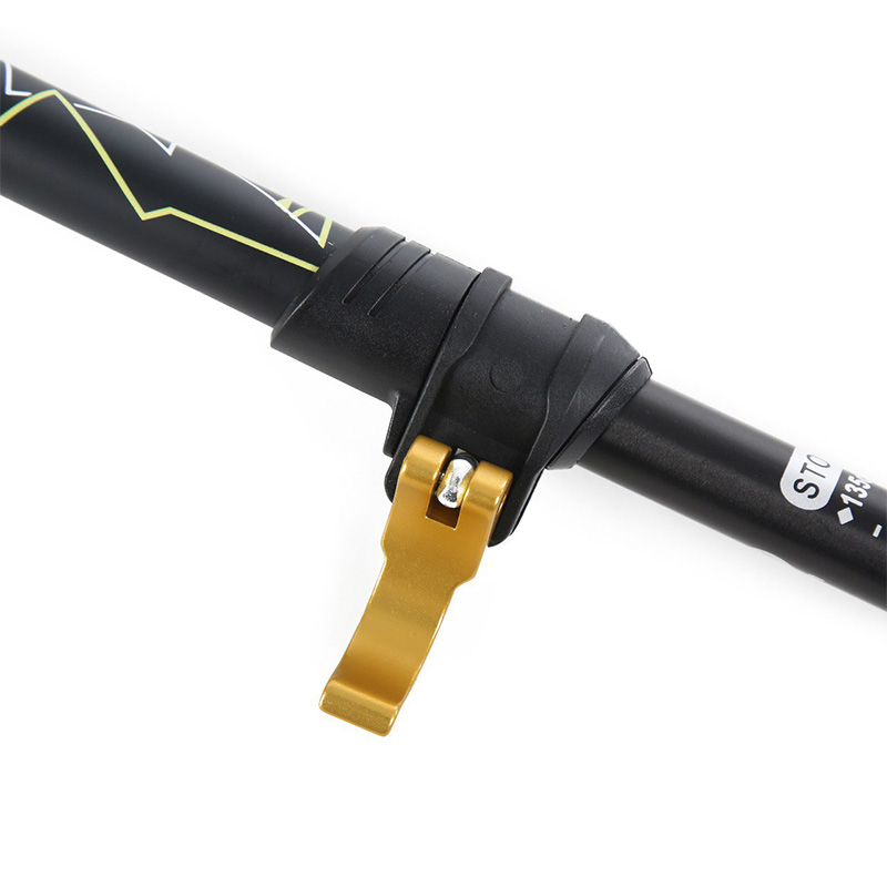 عصا کوهنوردی مدل SN-T0114 با سیستم کلیپسی طراحی شده است که امکان تنظیم طول عصا را سریع فراهم میکند. این کلیپس ها طول عصای شما را در بیشترین حالت به 135 می رسانند که بسته به نیاز خود می توانید ارتفاع دلخواه خود را تنظیم کنید.
