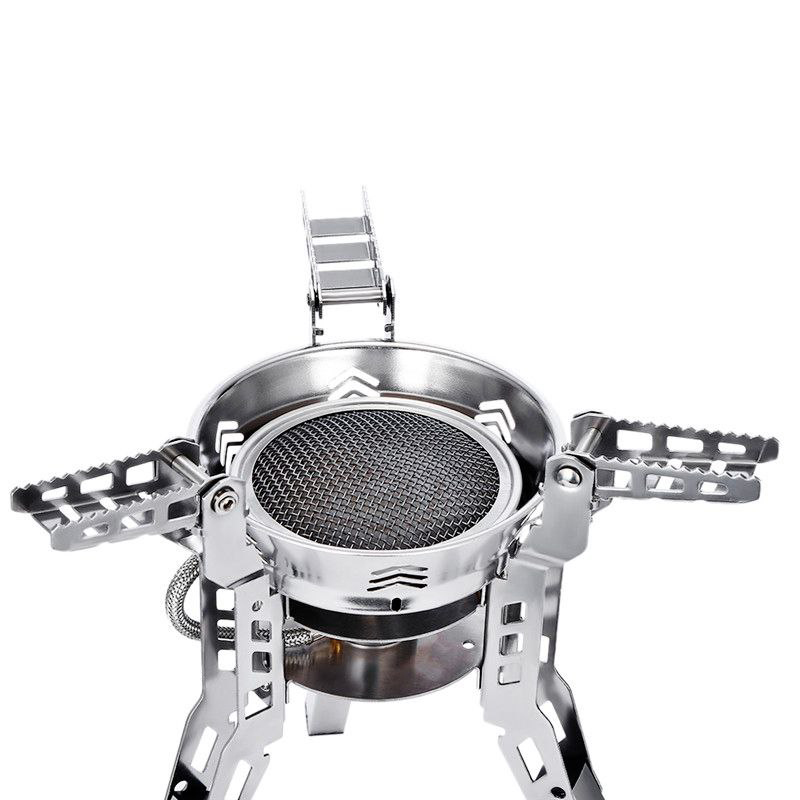این محصول همچنین دارای پایههای پرهای شکل بوده که از سرخوردن ظروف روی آن جلوگیری میکند.یکی از ویژگیهایی که ممکن است بیشتر به چشم بخورد پایههای این محصول است که نسبت به سایر مدلهای متداول بلند تر است.علت این کار این است که شما میتوانید کپسول گاز را از قسمت زیری به سرشعله متصل کنید و با این کار از نهایت ظرفیت کپسول استفاده میشود.